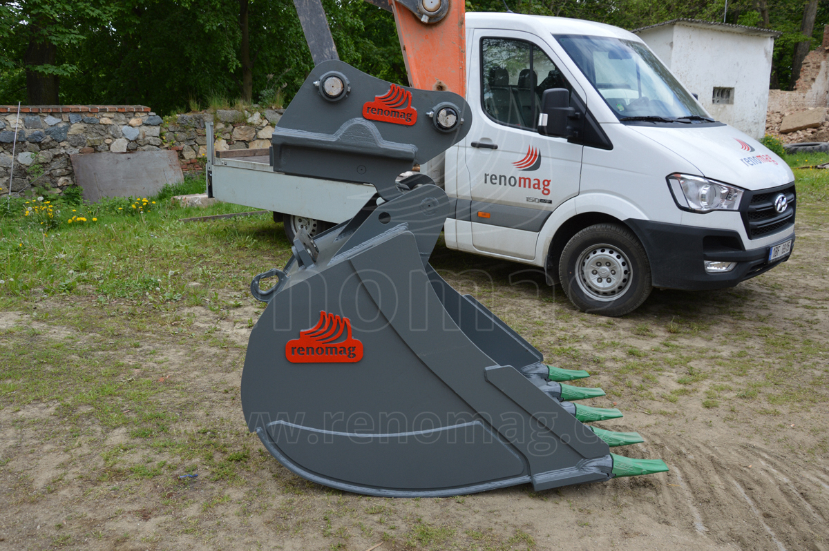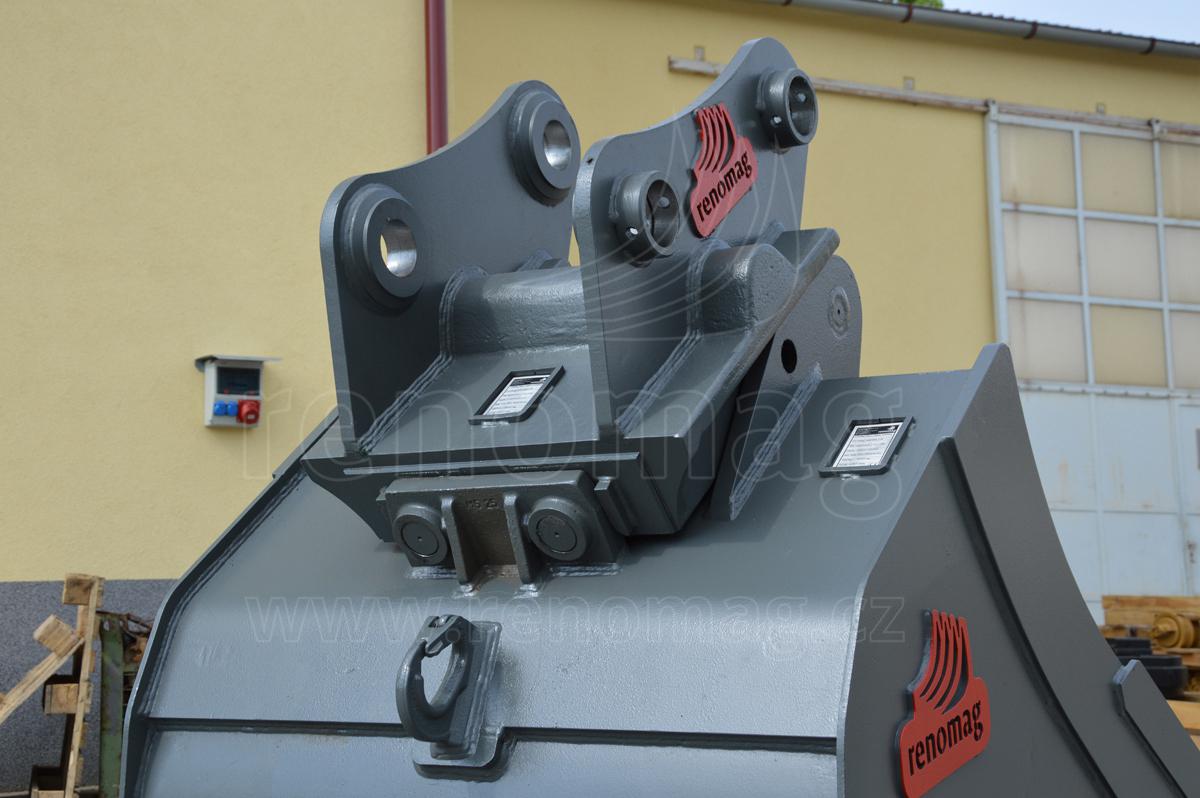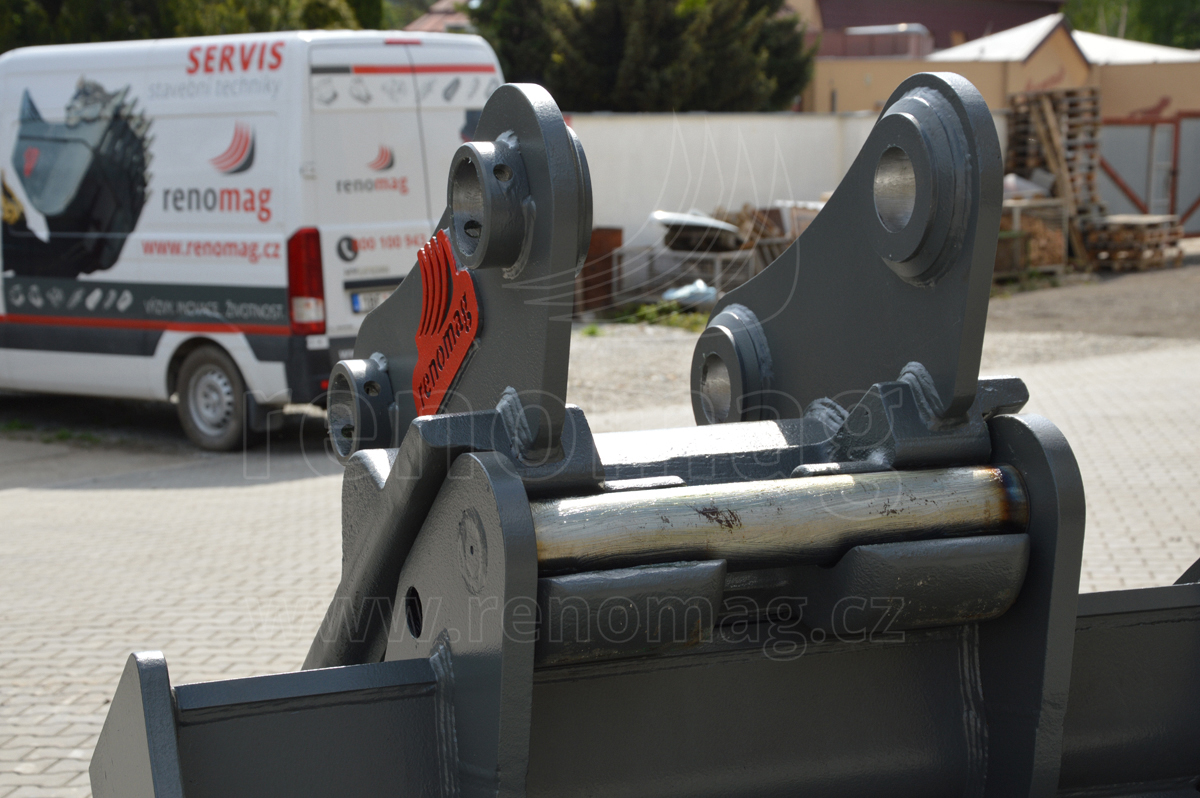 Quick-coupling equipment enables quick and safe changing of different attachments on your miniexcavator, backhoe loader or excavator. The outstanding feature of RENOMAG RL quick couplers is their low construction for loss-free transfer of excavating power and strong grip. This type can also grip the original Lehnhoff® system attachments.