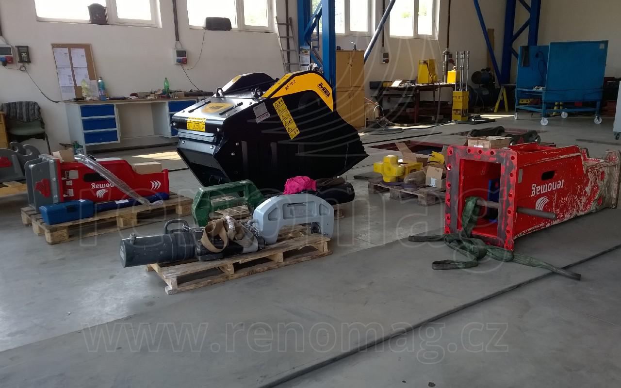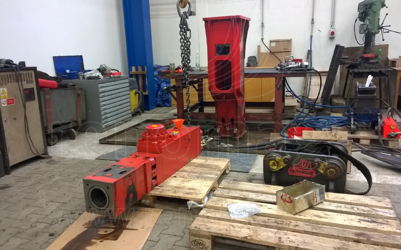 Regelmäßige Wartung, bzw. eventuelle Reparaturen der Hydraulikhammer der Marke RENOMAG führen unsere fachlich geschulte Mitarbeiter in unseren spezialisierten Werkstätten durch. Wir verfügen über die für diese Tätigkeit erforderliche Ausstattung. Elektrische, pneumatische und hydraulische Geräte als auch Hochdruckwerkzeuge machen es möglich, die schweren Schraubenverbindungen durch genügenden Moment auch bei den größten Hammern anzuziehen.